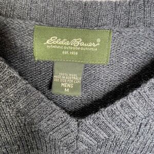 Eddie Bauer 100% Wool V Neck Sweater Size Medium Gorpcore Outdoors
