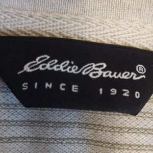Eddie Bauer 100% cotton taupe tan & olive green stripe polo shirt, XXL