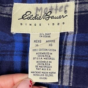 Blue, Navy, & White Plaid 100% Cotton Flannel Eddie Bauer Button Front Shirt.