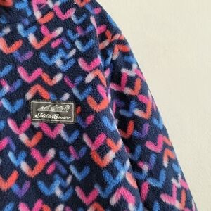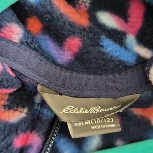 Eddie Bauer Blue Heart Print Quarter Zip Jacket Pullover Fleece. Girls 10/12. Good used condition. No stains or holes. Light wash wear.