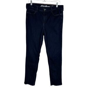 Eddie Bauer 14 Curvy Stretch Slim Straight Leg Denim Mid Rise Jean Dark Wash EUC