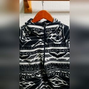 This is a pre-loved but VERY well taken care of Eddie Bauer, 1/4 Zip, Pullover, Aztec Print, Western Style Sweatshirt in Black and White.