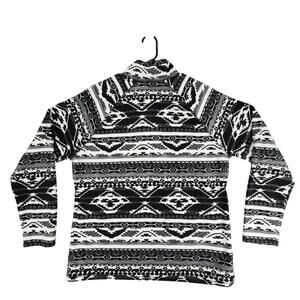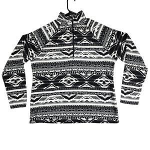 Eddie Bauer 1/4 Zip Pullover Fleece sz XL Women Aztec Southwest Black White Soft