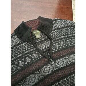 Eddie Bauer 1/4 zip Sweater Size L Burgandy & Black pattern 100% Morino Wool