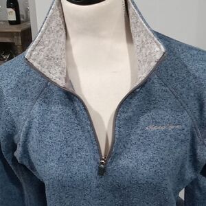 Eddie Bauer 1/4 zip long sleeve blue & Gray pullover with collar size Small
