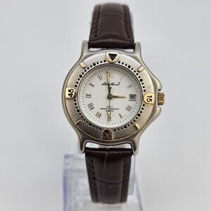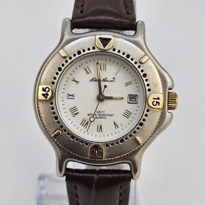 Eddie Bauer 28MM Women Watch Silver Gold Tone Date New Leather Band New Battery