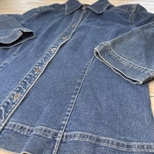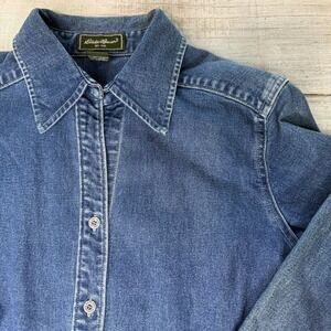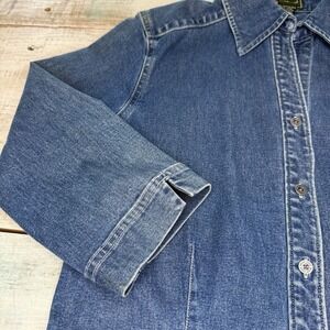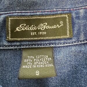 Eddie Bauer 3/4 Sleeve Button Up Light Weight Denim Shirt Size Small EUC