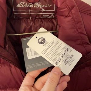 Brand new Eddie Bauer 650 maroon down best. New with tags, never worn, beautiful vest just a little to small for me! Retails for $85