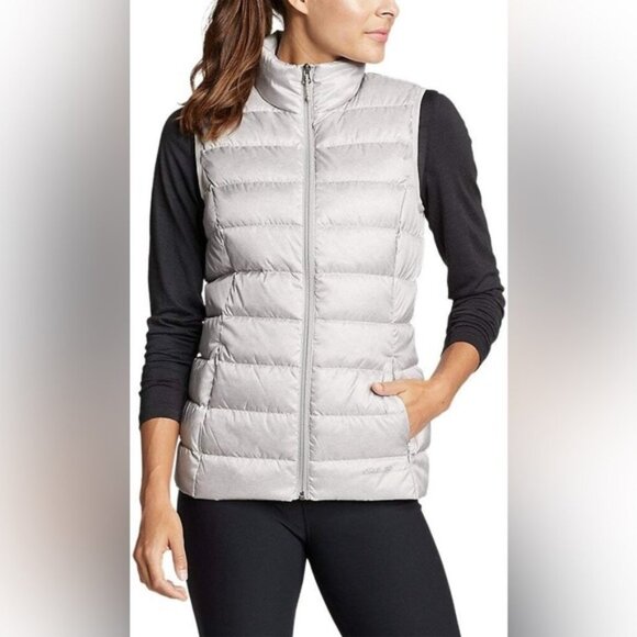 Eddie Bauer 650 fill Woman’s Light Grey Cirruslite Down Feather full zip Vest