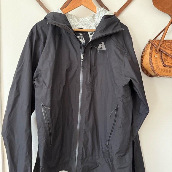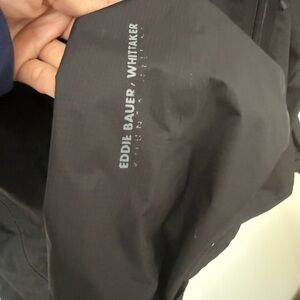 Eddie Bauer Whittaker Ascent black windbreaker jacket with hood. Great condition besides lettering peeling . Tall Large #outdoor #windbreaker