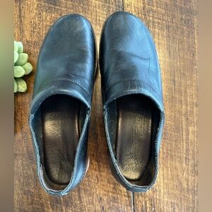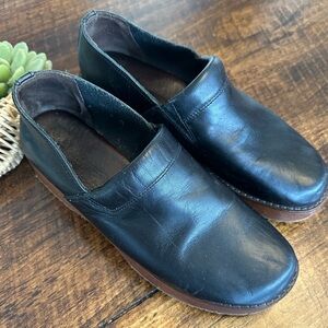 Eddie Bauer | 90’s Black Leather Wood Clogs, Made in Italy