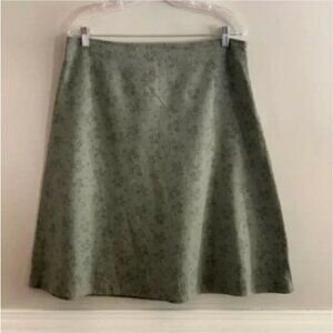Eddie Bauer A Line Linen Blend Floral Print Olive Colored Skirt Size 12