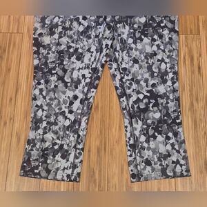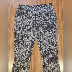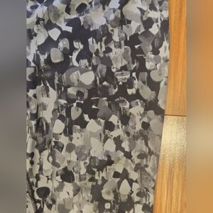 Stylish leggings with an abstract black and gray print. Perfect for casual wear or workouts. Used but still have some life left.