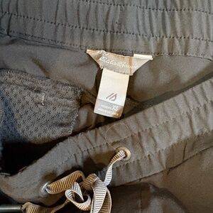 The Eddie Bauer Athletic Pants for women in size XS are a sleek and versatile option for casual occasions. Featuring a pull-on closure and a comfortable 8" rise, these black polyester pants have a stretchy material with 11% spandex for added flexibility. With a straight leg style and 32-inch inseam, these machine washable pants also come with adjustable waistband and pockets for added convenience. Perfect for summer, fall, and spring, these pants are a stylish and practical choice for everyday wear.