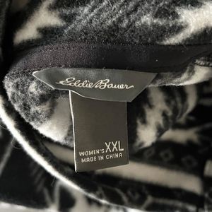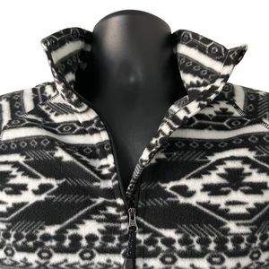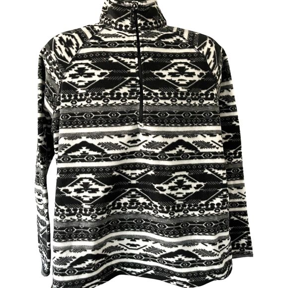 Eddie Bauer Aztec Fleece Jacket Womens XXL 1/4 Zip Pullover Geometric Pattern Black White