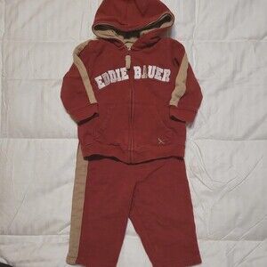 Eddie Bauer Baby Red Tan Two piece Track Suit Set 12 Months