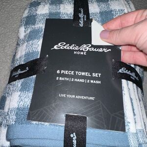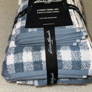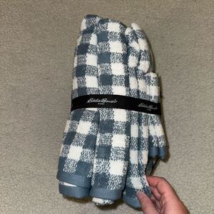 Eddie Bauer Bath Towel Set Preston Check Denim Blue White Plaid NWT