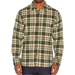 Eddie Bauer Bayleaf Green Plaid Flannel brushed cotton twill shirt