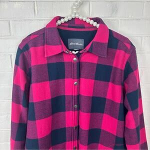 Eddie Bauer Big Plaid Check Print Snap Button Fleece Lined Shacket Size XL