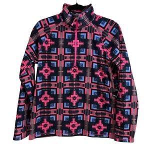 Eddie Bauer Black Pink Blue Aztec Pullover Quest Fleece 1/4 Zip Jacket Med NEW