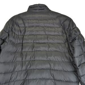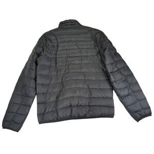 Stylish black puffer jacket. Lightweight and warm. Full zip closure. Two zippered pockets.