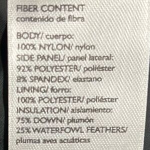 This black puffer jacket from Eddie Bauer is designed with a hood to provide warmth and protection against the wind. Its quilted construction ensures excellent insulation, making it an ideal choice for chilly conditions.