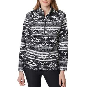 Eddie Bauer | Black and White Geometric Patterned Fleece Quarter Zip Pullover