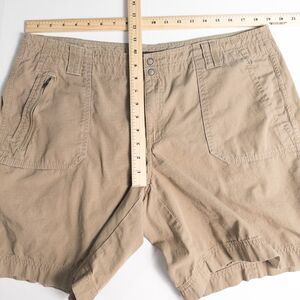 Eddie Bauer Blakely Fit 7" Shorts Womens 16 Tan Ripstop Cotton Flap Pockets