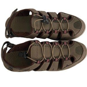 Eddie Bauer Blakley Water Hiking Closed Toe Sandals Shoes. Leather and man made uppers. Taupe color. Women’s size 10. Good Preowned Condition. No flaws.