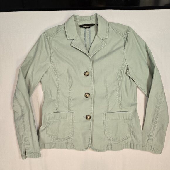 Eddie Bauer Blazer Jacket Womens 8P light green Corduroy 3 Button Notch Collar