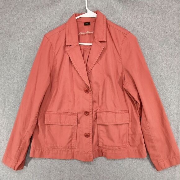Eddie Bauer Blazer Jacket Womens Sz PL Coral Orange Long Sleeve Single Breasted