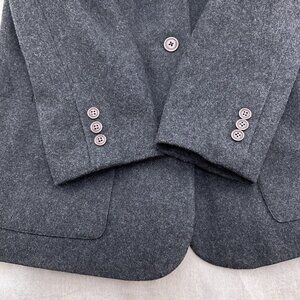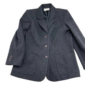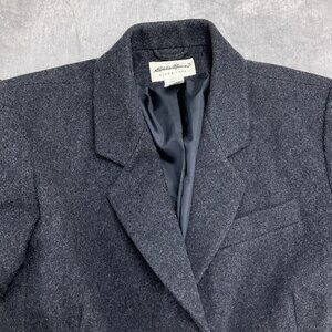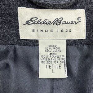 Eddie Bauer Blazer Women Large Petite Gray Flannel Wool Nylon Classic Jacket