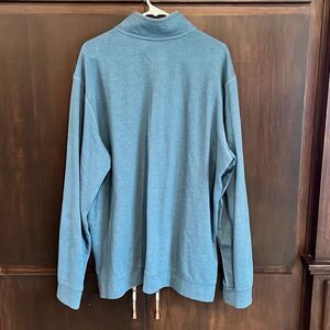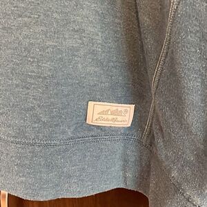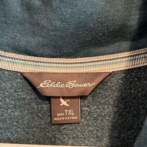 This top is made by Eddie Bauer. It’s a dusty blue with a 1/4 zip neckline. Zipper is a little hard to pull up and down, but works as it should. Size XL tall and in very nice pre owned condition. Smoke free, dog friendly home.