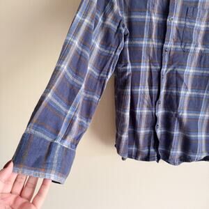 Eddie Bauer Blue + Brown Plaid Lightweight Flannel Button Up