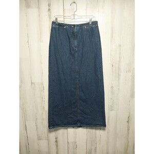 Eddie Bauer Blue Denim Midi Skirt Size 10 Back Slit