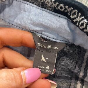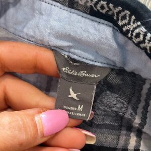 Eddie Bauer Blue Gray Plaid Button Up Collared Shirt Size M