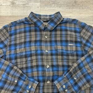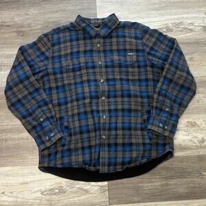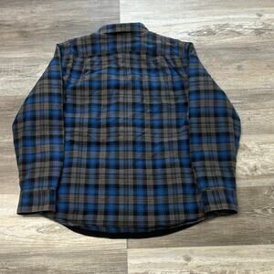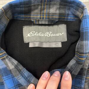 Eddie Bauer Blue Gray Tartan Plaid Mens L Button Up Flannel Lined Shirt Shacket