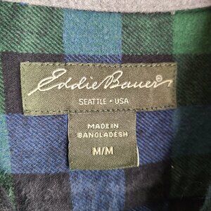 Eddie Bauer Blue Green Plaid Flannel Button Down Long Sleeve Shirt
