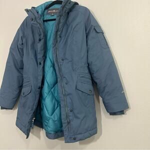 Eddie Bauer Blue Insulated Goose Down Hooded Jacket Size Small