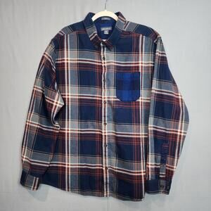 Eddie Bauer Blue Orange Plaid Flannel Shirt Button Up Mens Size 2XL