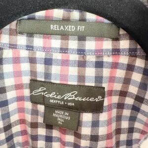 Eddie Bauer Blue + Pink + Brown Plaid Cotton Relaxed Fit Button Down XL Tall