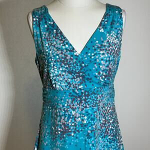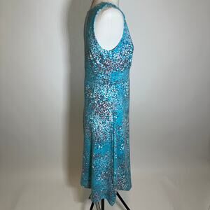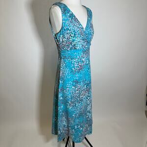Eddie Bauer Blue Polka Dot Sleeveless Faux Wrap Sun Dress Womens Size Medium M
