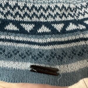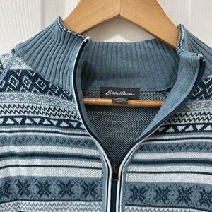 Eddie Bauer Blue Striped Fair Isle Pullover Sweater 1/4 Zip Mock Neck Womens M