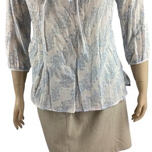 Eddie Bauer Blue White Floral Lightweight Cotton Blouse Size L