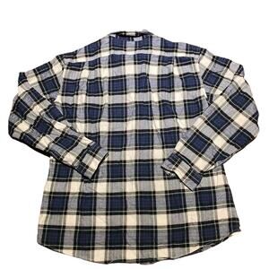 Eddie Bauer Blue and White Flannel Relaxed Fit Mens Large Button Up Shirt