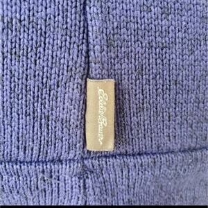 Eddie Bauer, size small, blue/purple pullover quarter zip fleece sweater with a mock neck . Smooth knit exterior and fleece lined. Exterior is in excellent condition. Interior fleece has a normal amount of wear from washing. No rips, stains, or holes.