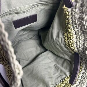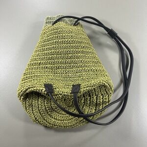 Eddie Bauer Boho Green Straw And Leather Drawstring Backpack Braided