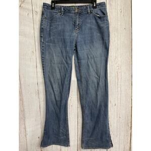 Eddie Bauer Bootcut Jeans Womens Size 12 Dark Blue Stretch Denim Side Slits