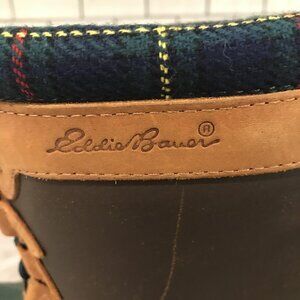 All visible Eddie Bauer brand markings on leather trim and heel patch