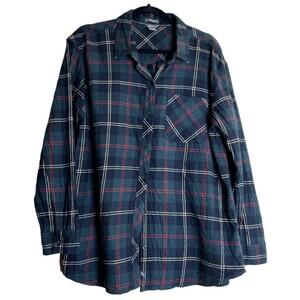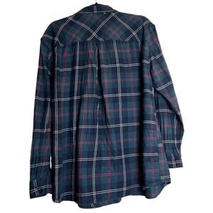 Eddie Bauer Boyfriend Fit Women Size Large Flannel Long Sleeve Button Up Shirt Plaid Blue Green Red White Country Western Cottage Comfort Cozy